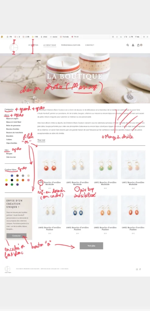 L’objectif : refonte du site e-commerce Créations Blanc Couleurs. Créer un site web pour artisan élégant, pérenne et autonome, en parfaite harmonie avec l’identité de la marque.