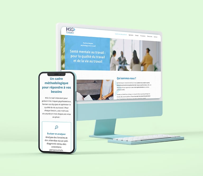 Exemple : site KSG Conseil, site élégant, simple à gérer, fonctionnel et optimisé.